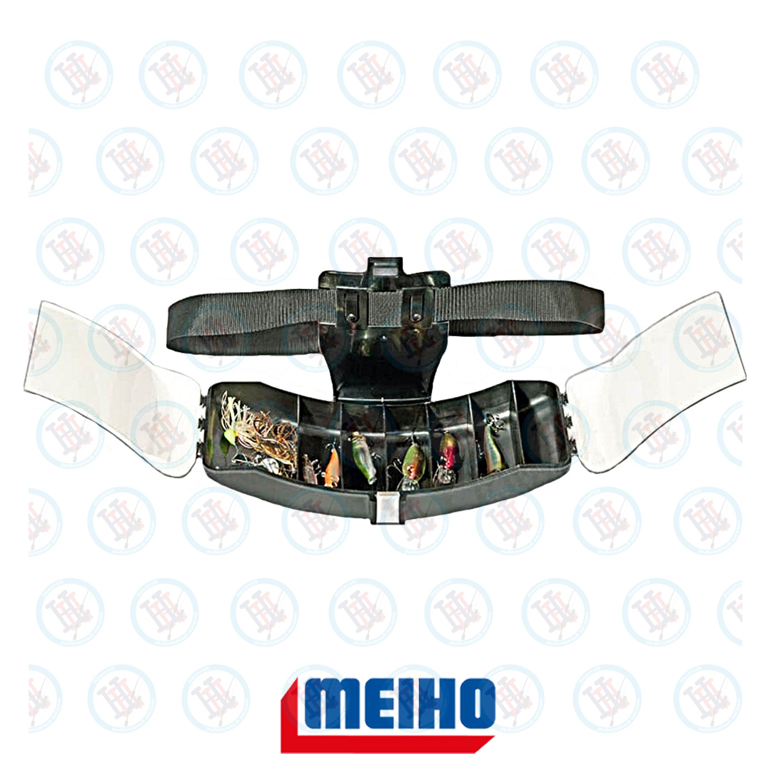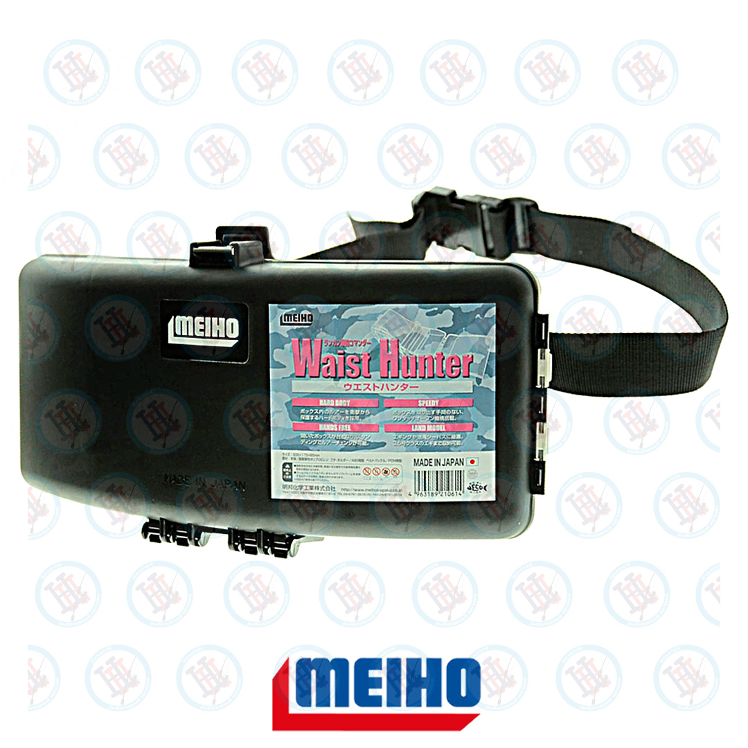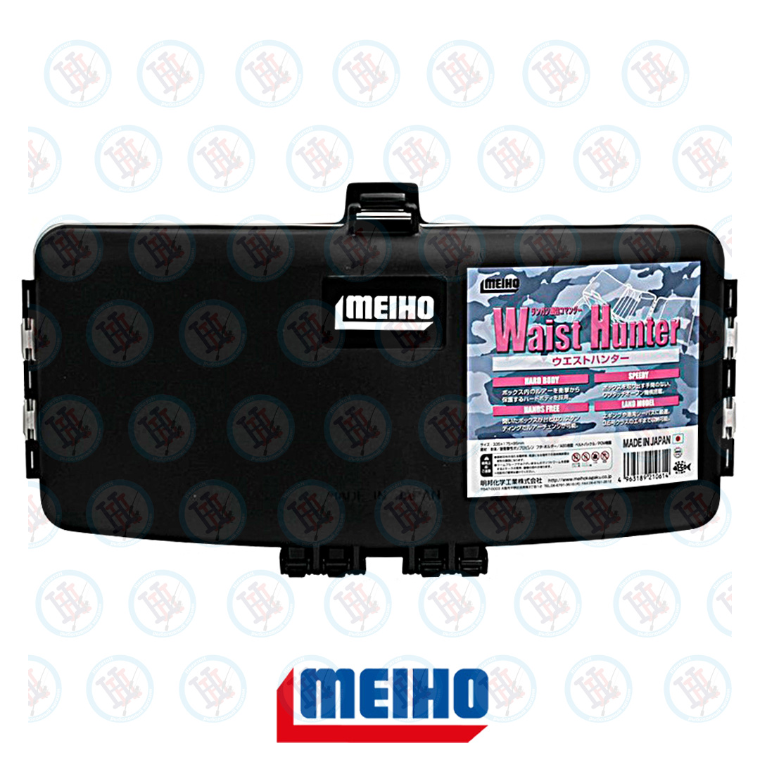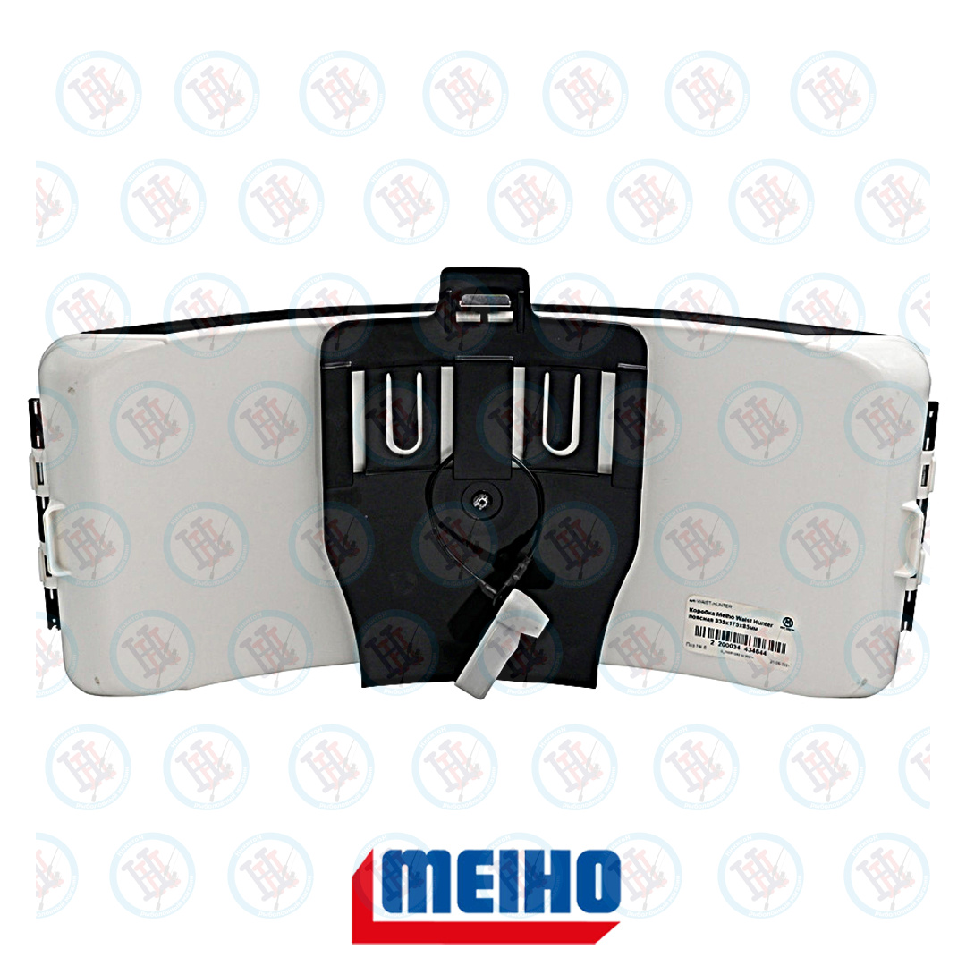 Meiho WAIST HUNTER - удобная поясная коробка с ремнем. Имеет изогнутую форму, плотно прилегает к талии, не сковывает движений рыболова. Корпус изготовлен из ударостойкого сополимера, крышка из особо прочного пластика ABS, защелка стальная. В раскрытом состоянии принимает горизонтальное положение, представляя собой портативный рыболовный «столик». При этом обе руки рыболова свободны, что позволяет легко менять приманки, не теряя времени. Внутреннее пространство разделено на 7 стационарных отсеков.