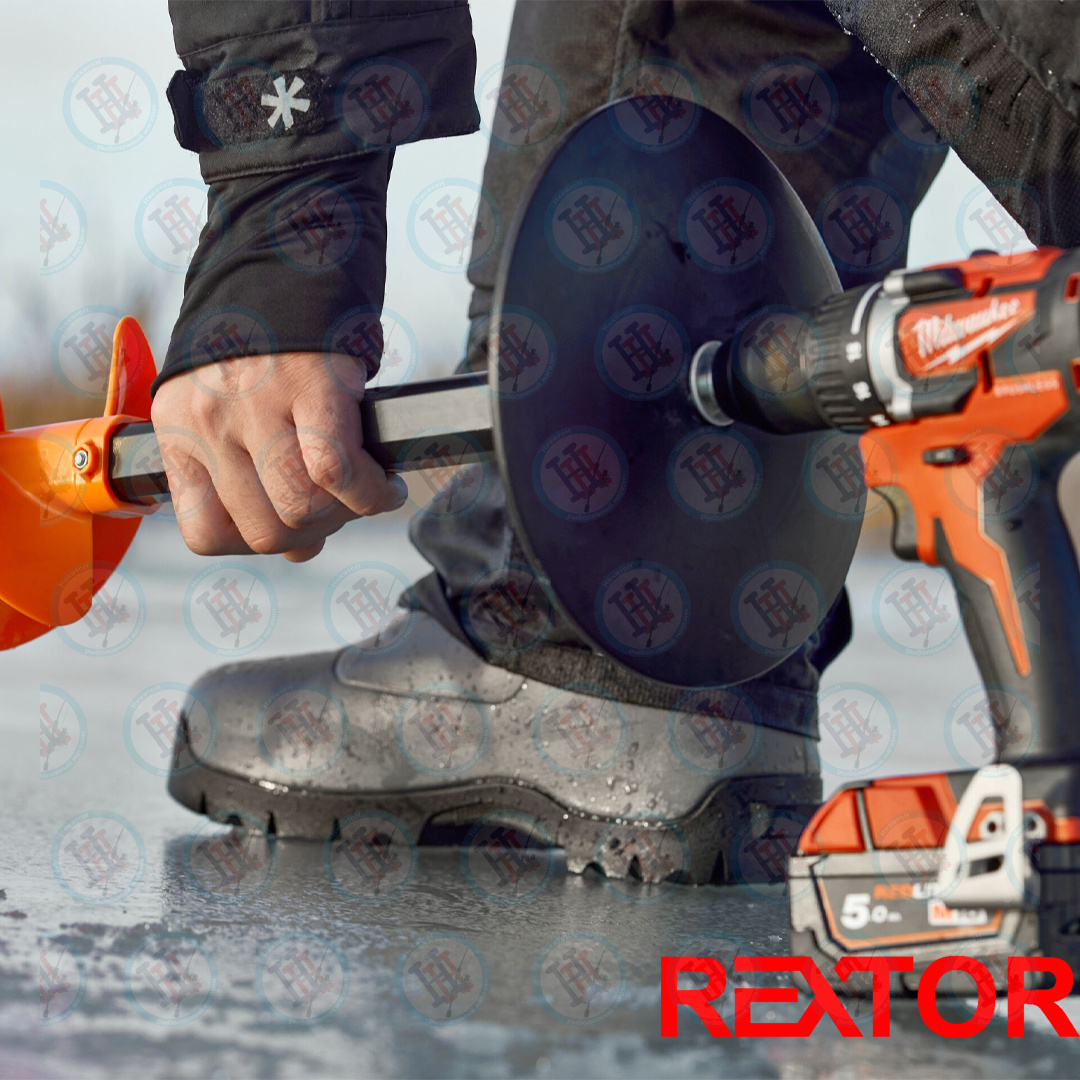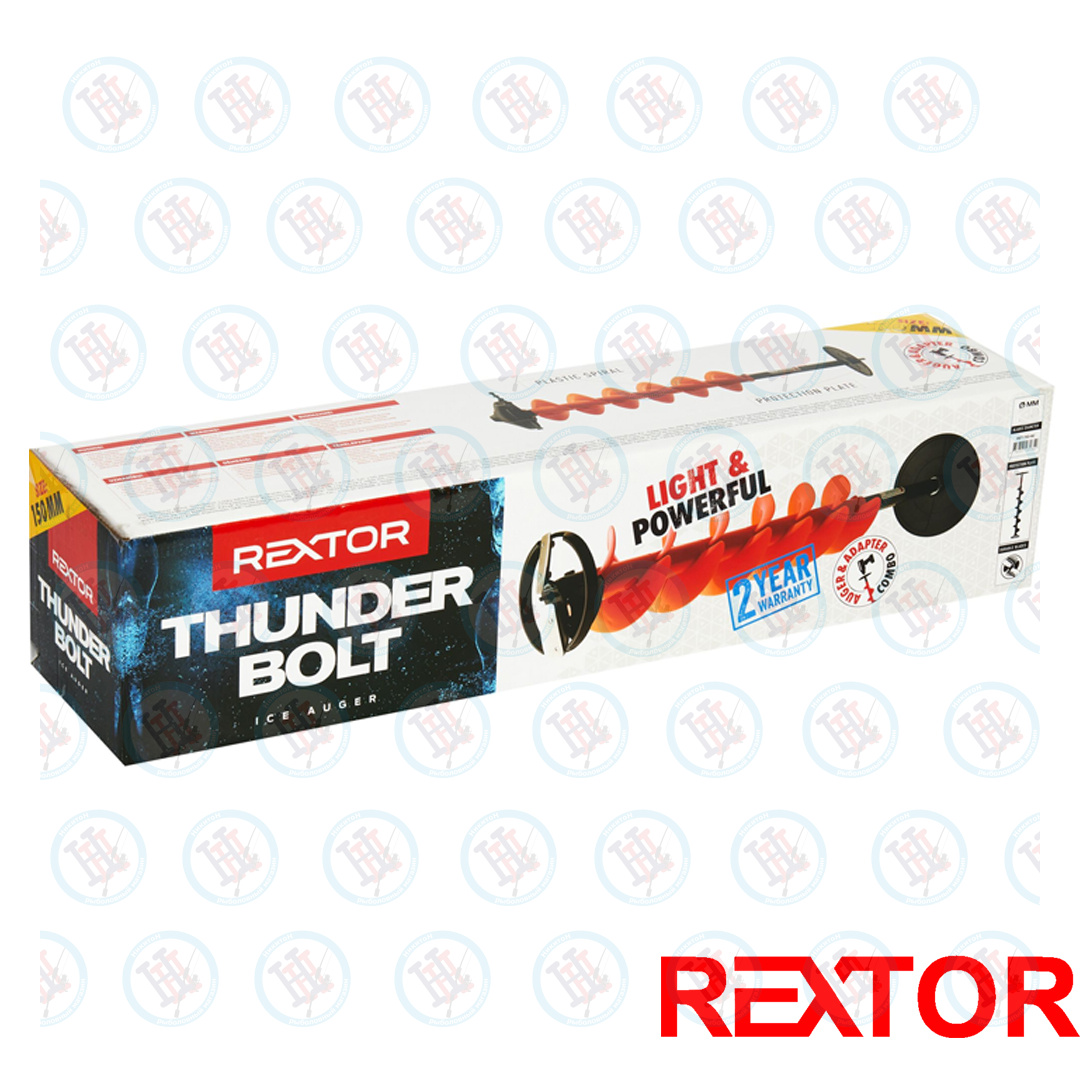 Шнеки ледобуров REXTOR THUNDERBOLT, оснащенные удобными адаптерами под шуруповерт. Преимуществом шнеков этого типа является использование пластиковой спирали, что значительно снизило их вес. Шнеки и адаптеры поставляются в сборе, что позволит рыболовам сразу же приступить к их использованию, нужно только присоединить шнек к шуруповёрту (с напряжением аккумулятора не менее 21В и крутящим моментом не менее 70Нм). Адаптер оснащён защитным пластиковым диском, исключающим проваливание шнека в лунку в случае самопроизвольного отсоединения от патрона шуруповёрта. На шнеке установлены ножи из нержавеющей стали, в том числе центрирующий нож. Шнек имеет 2-х летнюю гарантию на все сварные соединения. Шнеки данного типа предназначены прежде всего для сверления сухого льда. При сверлении мокрого льда возможно снижение эффективности, что не является дефектом.