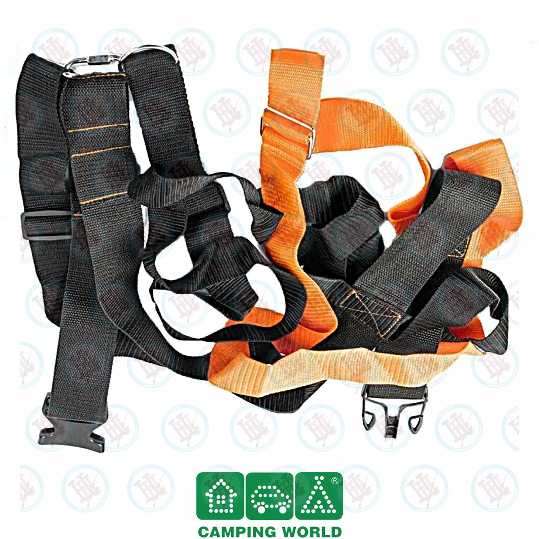 Стропа имеет защелку, к ней крепятся лямки. Опоясывающая стропа оранжевого цвета (40 мм) фиксирует обвязку, благодаря ей система не съезжает и не болтается на ящике. Система универсальная, подходит ко всем моделям ящика «Друг 2». Длина лямок регулируется под любой объем и подходит людям любого роста и любой комплекции. Рюкзак-обвязка для ящика «Друг 2» не займет много места, но позаботится о здоровье рыболова, распределив нагрузку от ящика равномерно по спине. Обвязка поставляется в прочном мешочке для удобного хранения.